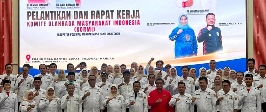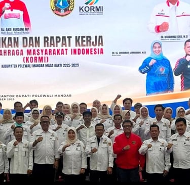 Polewali Mandar, 10 November 2025 — Komite Olahraga Masyarakat Indonesia (KORMI) Kabupaten Polewali Mandar resmi dilantik untuk masa bakti 2025–2029. Acara pelantikan sekaligus rapat kerja ini digelar di Ruang Pola Kantor Bupati Polewali Mandar, Senin (10/11/2025), dan dihadiri oleh jajaran pemerintah daerah, pengurus KORMI provinsi, serta berbagai komunitas olahraga masyarakat.